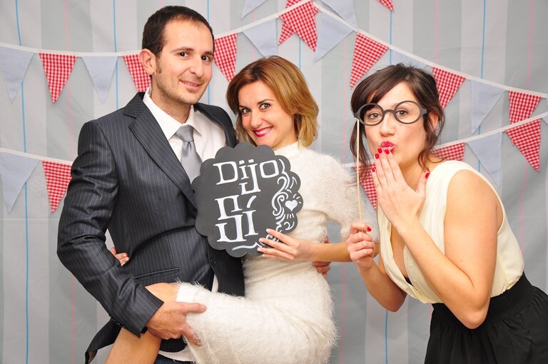 Celebrar una boda en Sevilla con photocall es una buena idea con la que os divertiréis al máximo en Salones Artemio.